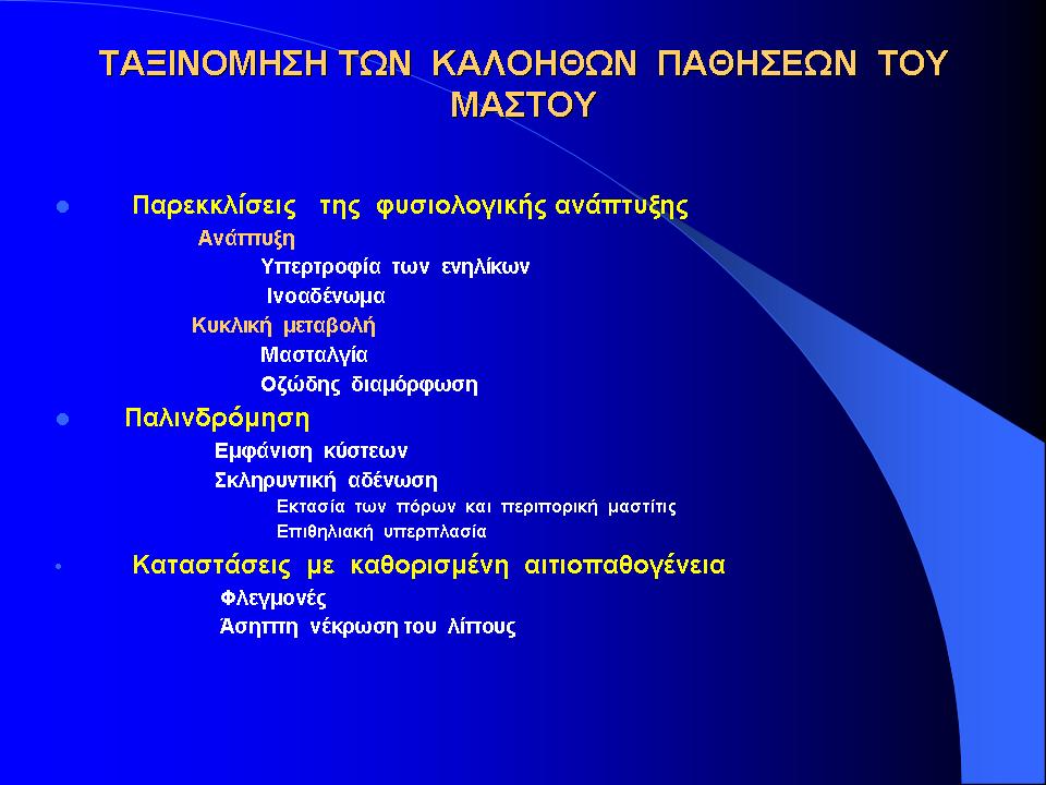 Χειρουργικές Παθήσεις Πάθηση Μάστου - ΚΑΛΟΗΘΕΙΣ ΠΑΘΗΣΕΙΣ ΜΑΣΤΟΥ ΣΥΓΓΕΝΕΙΣ ΑΝΩΜΑΛΙΕΣ ΤΩΝ ΜΑΣΤΩΝ - ΕΠΙΚΤΗΤΕΣ ΒΛΑΒΕΣ ΤΟΥ ΜΑΣΤΟΥ